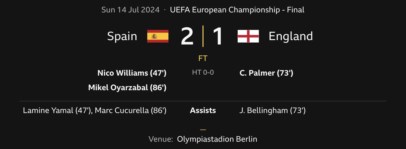 12pm PDT, 5pm EDT and 8pm UK it’s the Final of Euro 2024