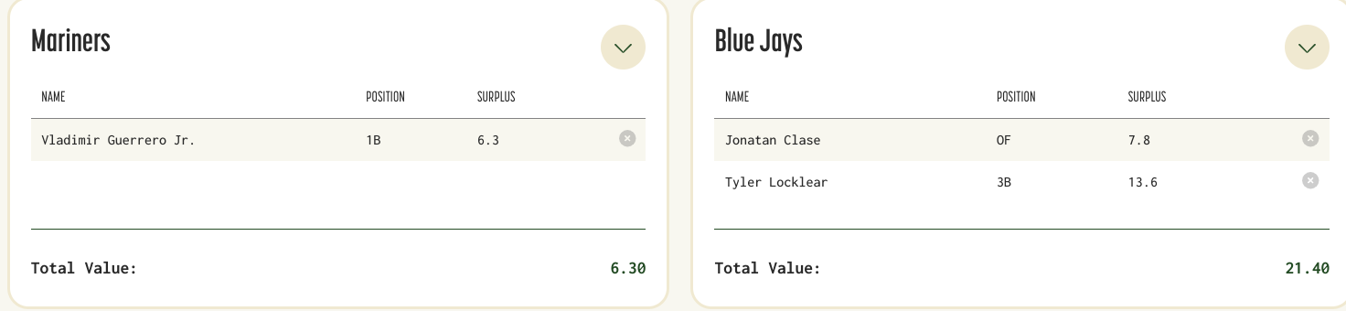 I would take either of those deals. I'm not super excited about Vladdy Jr. but if they would take that deal I would do it. I think the money would be a problem for the Mariners though.