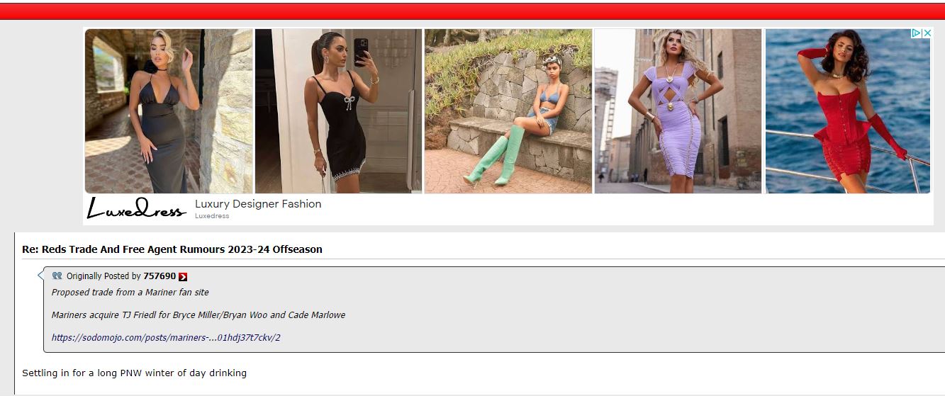 Sorry I got distracted. Reds fans don't like their own player and want us to day drink?harmony wrote: ↑Thu Nov 09, 2023 10:47 pmCincinnati Reds fans react to the proposed Mariner trade for T.J. Friedl:D-train wrote: ↑Wed Nov 08, 2023 4:22 pmSodo unearths a guy that I had NEVER heard of that seems to be a good trade target.