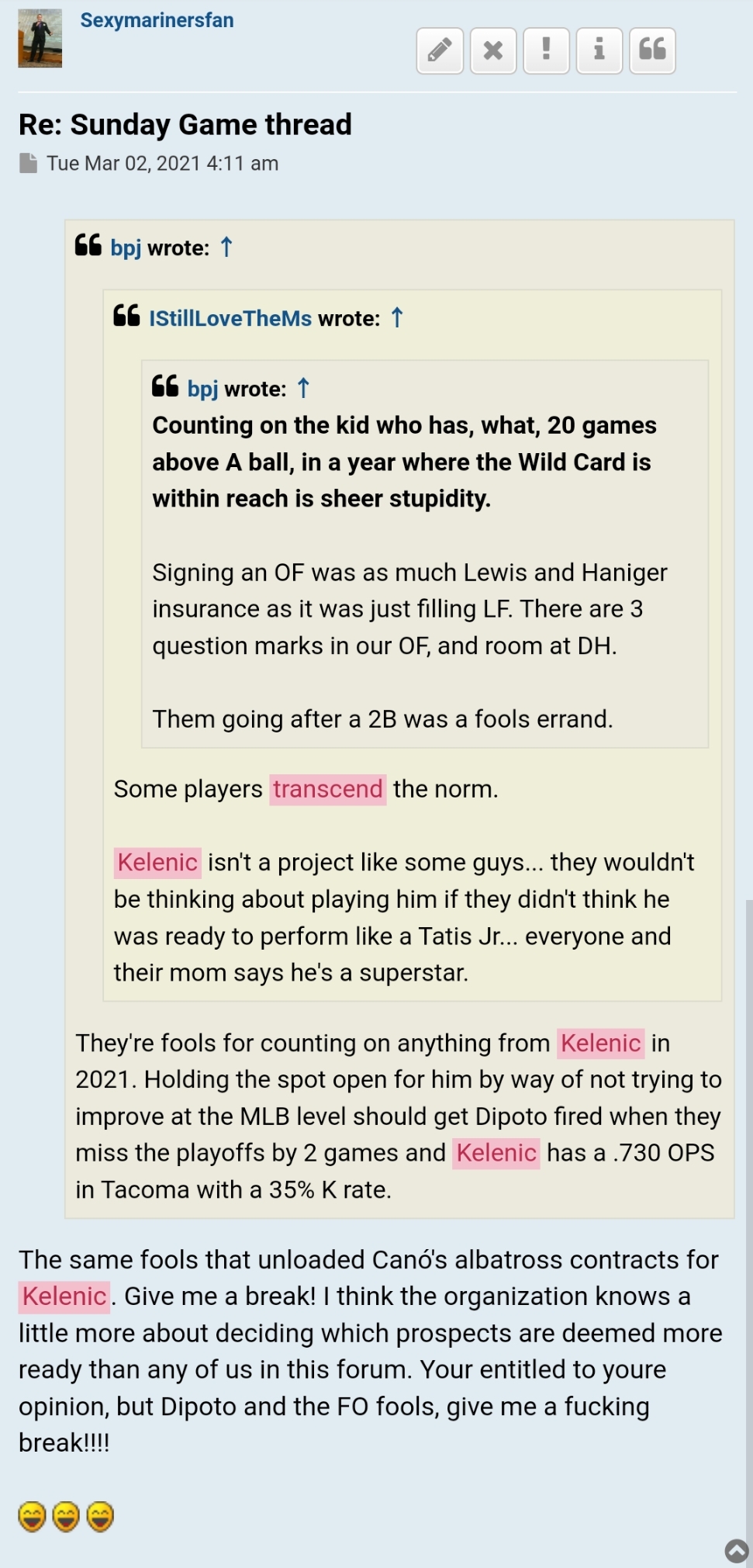 Kelenic bombing is on Kelenic. The trade was great, and 28 other GMs would have done that trade in a heart beat.
