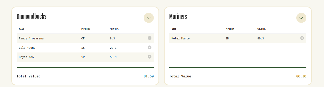 Marte just put up 6.8 War Which is valued at about $55M. He is under team control for only $60.8M for FOUR years.Sibelius Hindemith wrote: ↑Mon Dec 16, 2024 3:53 amNo effing way are those trade values correct. Two years of Ketel Marte probably isn't worth five years of Woo alone.