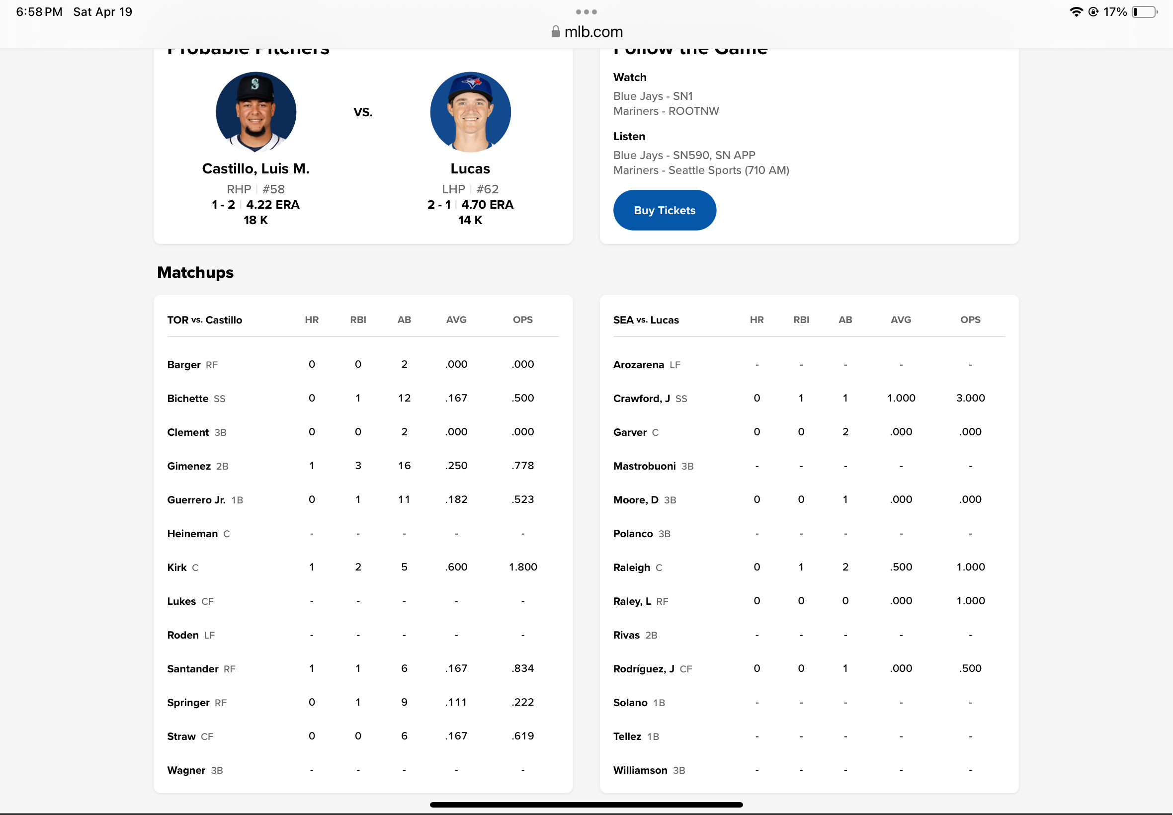 Vs Easton Lucas who has a career 7.49 ERA over 28 innings in the majors.