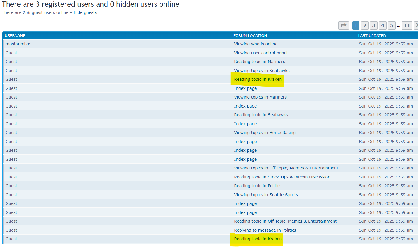 It says one of the "guests" was "replying to a message" in the Politics forum. How would that be possible?mostonmike wrote: ↑Sun Oct 19, 2025 9:05 amTo add to what others are posting, its now 2am PDT - I don't think there are 2 people anywhere in the world who would read a topic in the Kraken forum, so definitely something to keep an eye on and still 256 guest users in the middle of the night.