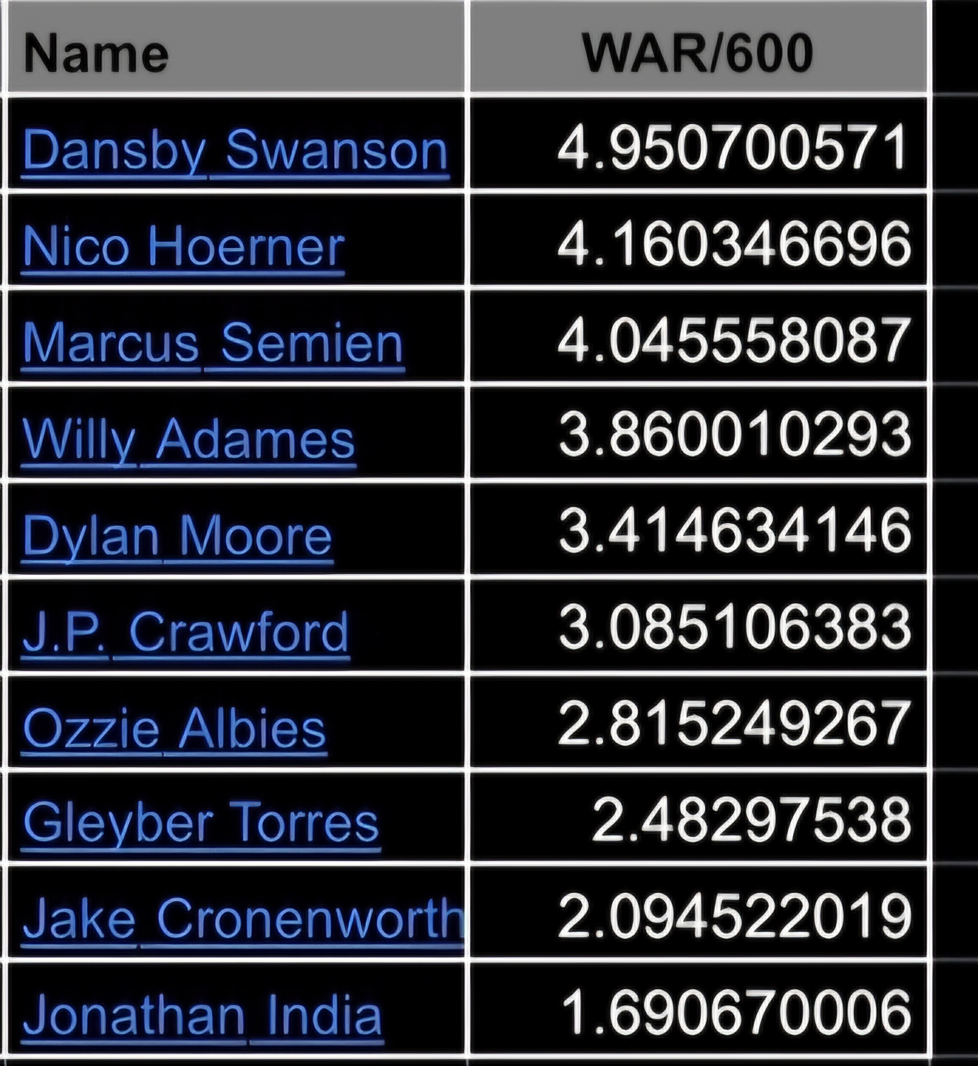 The Mariners have 3 of the top 25 stolen bases leaders according to this metric (with 800+ PA's since 2022)- Moore, Julio, and Arozarena.