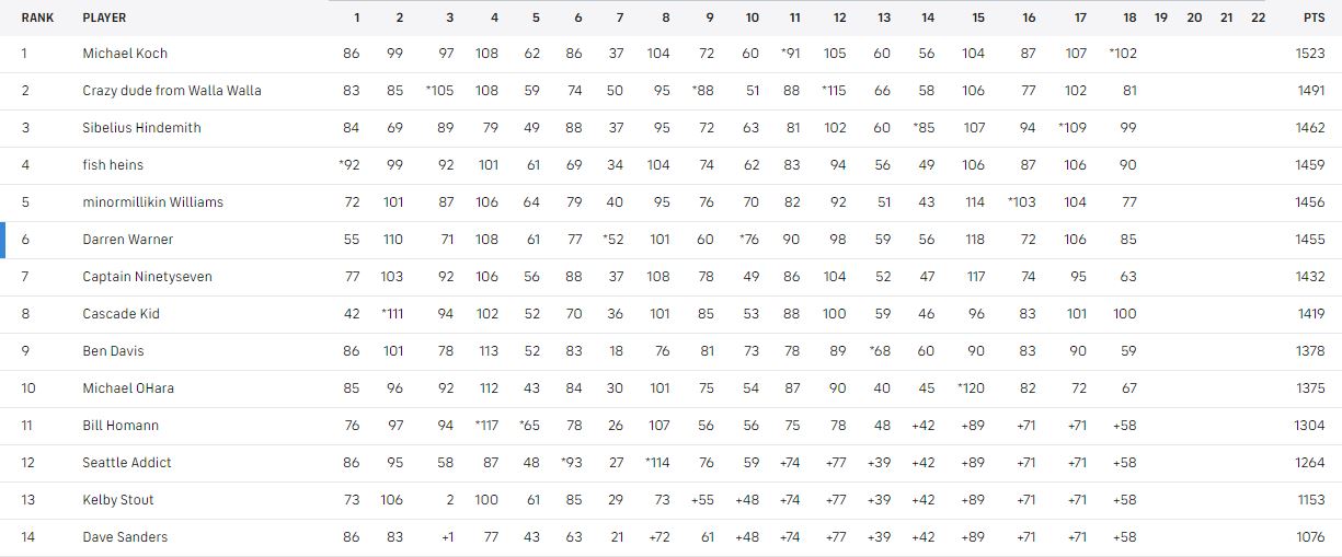 Congrats to Michael on winning the Regular season portion of the Pool. My dreams of a Bronze medal died on the frozen tundra of Foxborough along with BB's HC career..
