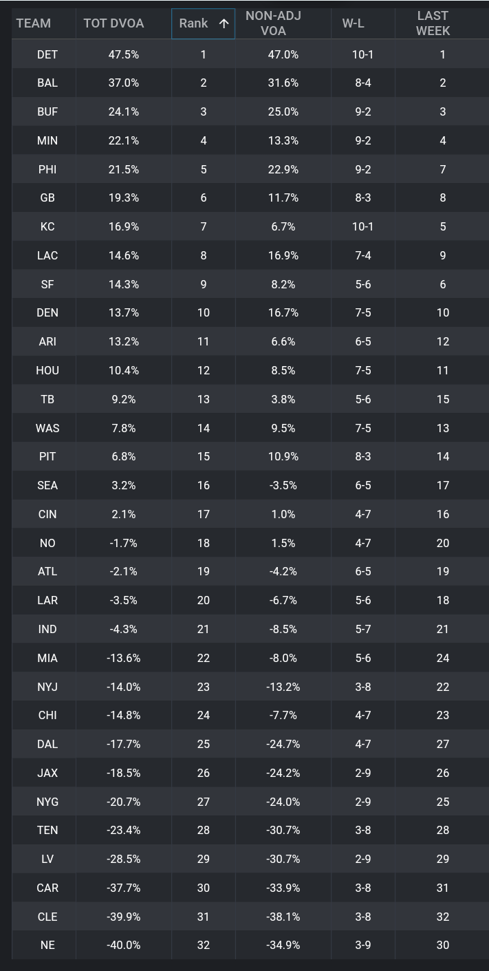 The DVOA ranking has Seattle middle of the pack and three NFC North teams in the top 6...