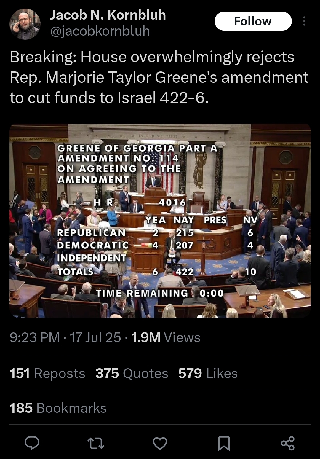 Trump has just fallen in line with the swamp on Epstein. And now he's Israel's biggest supporter...