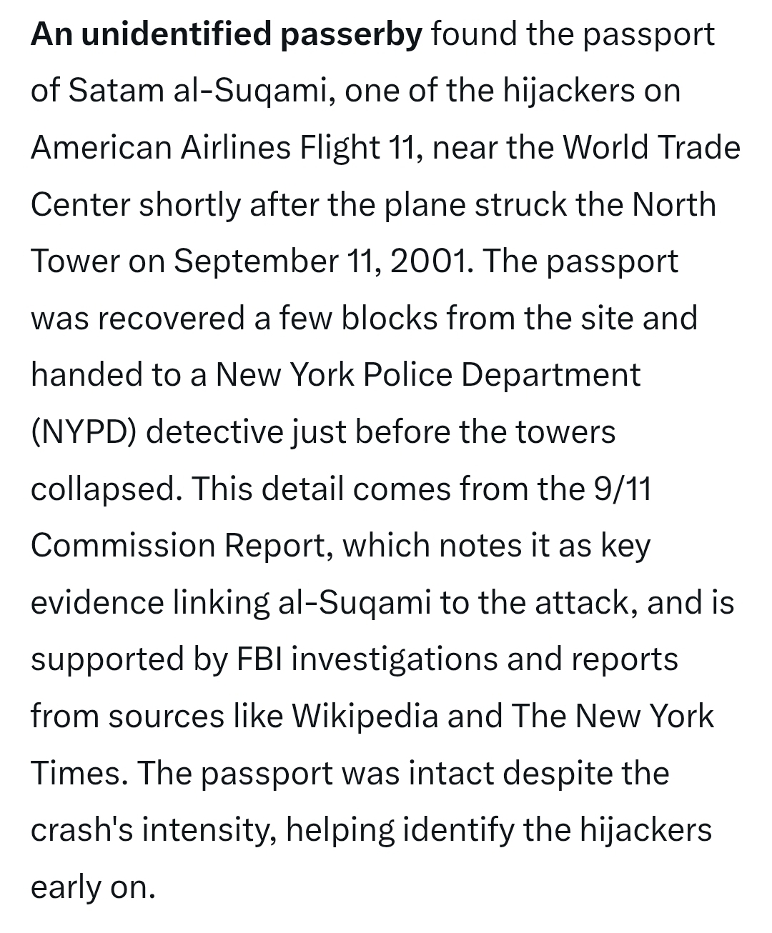 You didn't answer the question, I wonder why. Aircraft crash investigators find personal effects of passengers all the time. Sorry, but it's just a fact.bpj wrote: ↑Tue Sep 02, 2025 6:04 pmAmazing you can even type that stupidity out then question my comments.XpertDBA wrote: ↑Tue Sep 02, 2025 5:52 pmSo when aircraft crash investigators find personal effects (letters, wallets, even photographs) completely intact from other aviation disasters, sometimes hundreds of meters from the crash site, all of those are made-up conspiracies by the government? Oooooh.....spooky.