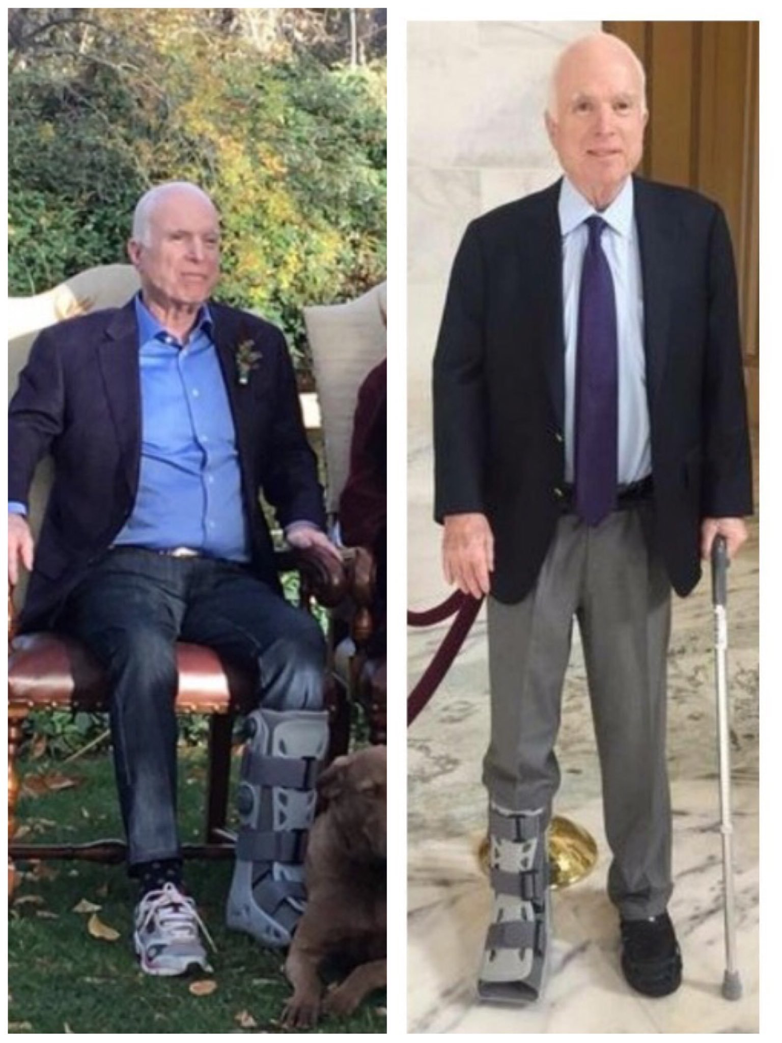 Remember back in 2017, when the deep state was just warming up with their Russia coup attempt, there were rumors that Hillary and John McCain were wearing walking boots to hide the ankle bracelets they were wearing. McCain was pictured wearing the boot on both feet:seattlefan-daBronx wrote: ↑Tue Dec 01, 2020 6:33 amThe rumors are getting louder and from more that one source now that Biden is pleading for pardons in exchange for concession.