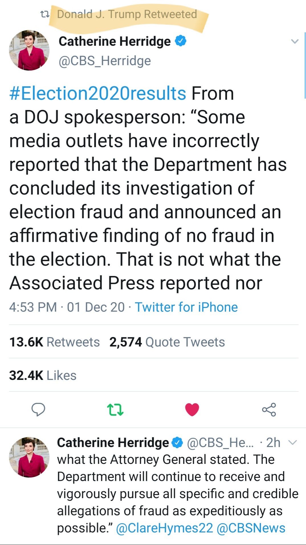 The verdict is still out on AG Barr. The DOJ issued a statement saying that election fraud investigations have not concluded. Barr is in the 50/50 category as far as I'm concerned. He could be working for Trump's interests and therefore the country's interests or he could just be another protector of the deep state. Let's see if anything is done with the two truck drivers who say they delivered hundreds of thousands of ballots across state lines. That's something the DOJ has to investigate because federal laws were broken.