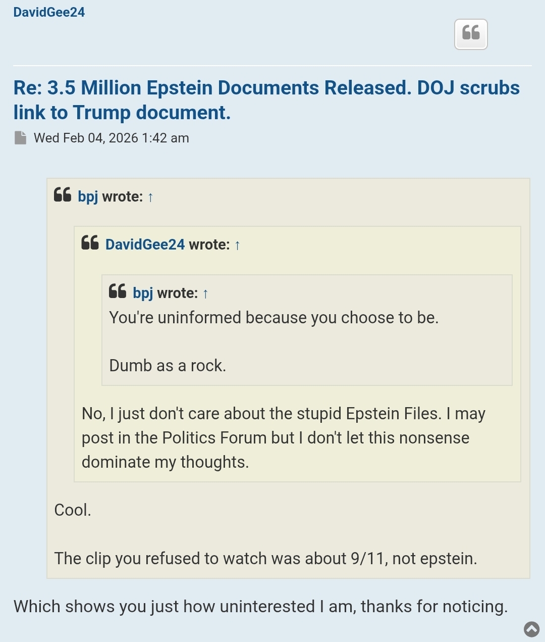 And they go so far as to fight with everyone else on the board, just to prove how horrible BPJ is... What a clown.