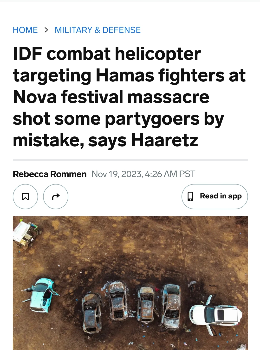 They say Hamas killed their 1,400 people, but Israel's own media confirms Israel killed their own people during the attack while firing indiscriminately into the crowd.
