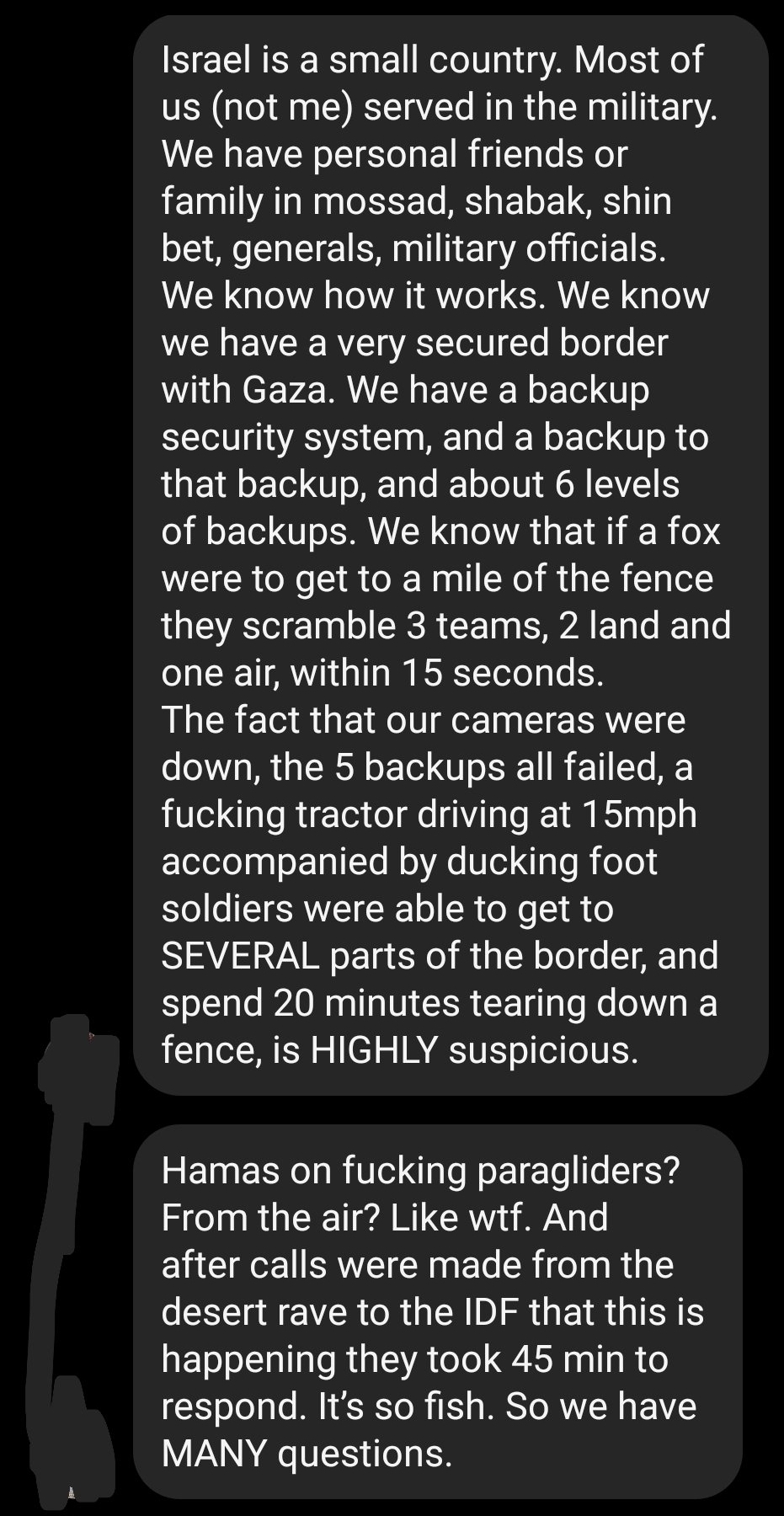 Definitely as many questions as answers coming out.Cascade Kid wrote: ↑Sat Oct 14, 2023 3:43 amMany are speculating Iran provided training, arms and strategy. I've even watched a conspiracy that Bibi Netanyahu may have let it happen https://www.youtube.com/watch?v=wPx1muBhjZcauroraave wrote: ↑Fri Oct 13, 2023 3:11 pm