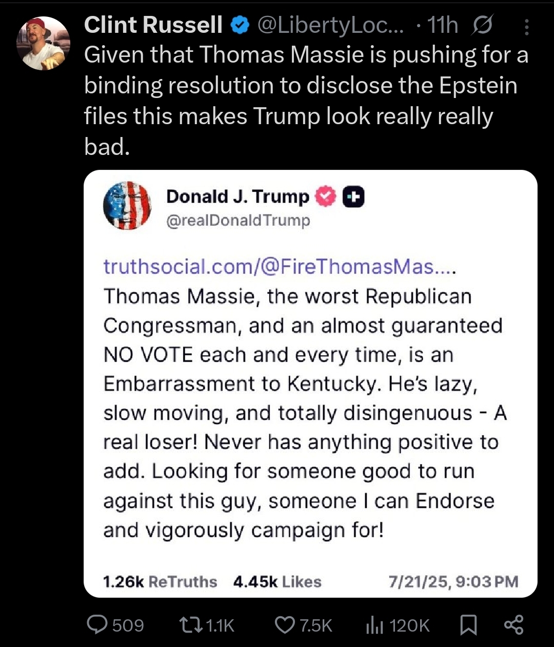 Seems like a big time-waster, but i guess we'll see.Mel Bradford wrote: ↑Sat Jul 19, 2025 11:55 pmApparently there is sealed Grand Jury Testimony from the 2019. If Epstein's convicted assistant Ghislaine Maxwell has dirt, she's not talking.