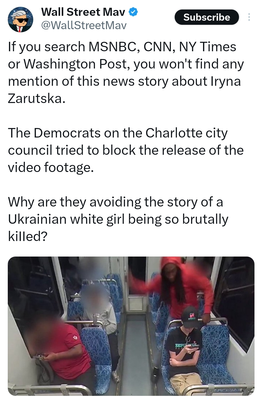 A Ukrainian refugee that came to the US, sits in front of a black dude on the subway and he stabbed her to death.