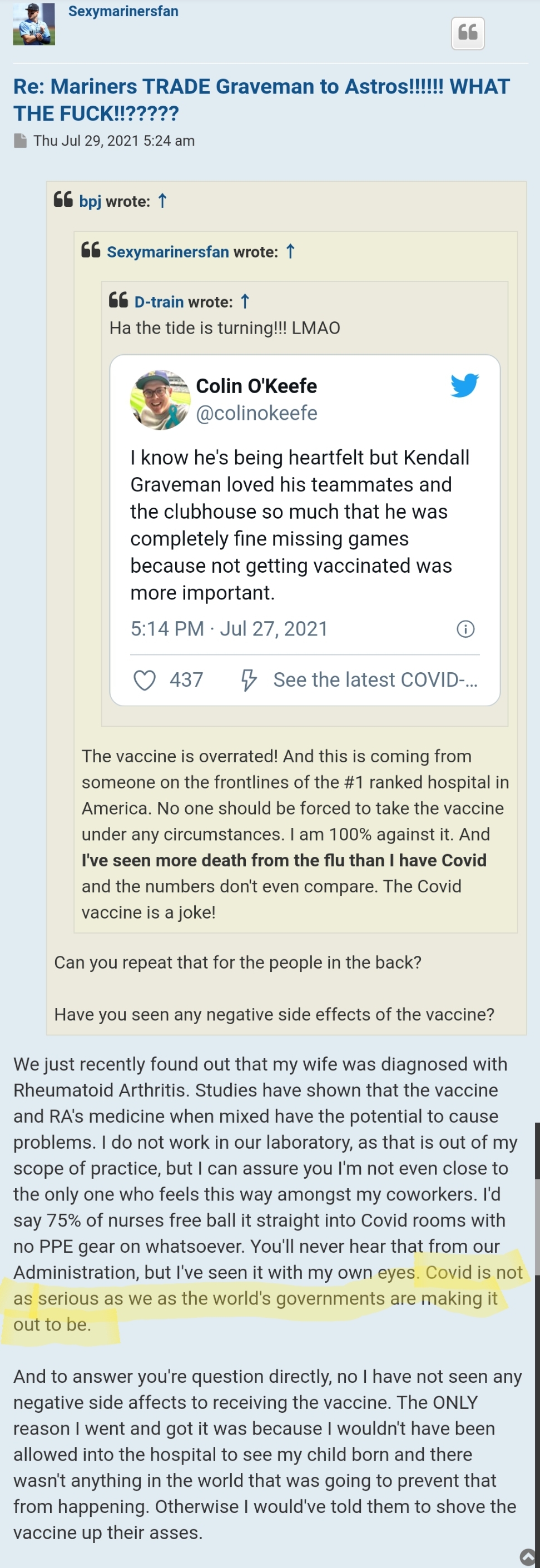 Even our resident frontline medical worker agrees (which is a complete 180 from his statements when Covid first became news)-