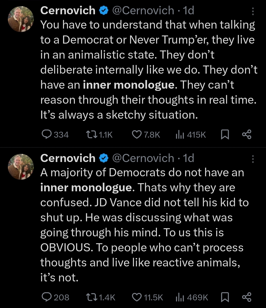 Hope you are right, DT. I am deeply mistrustful of anything that comes out of the Democrat camp. There is no depth to which they will not sink to lie, cheat and deceive the American people, including the members of their own party, who they just shit on with the bloodless coup to install Kamal Toe. I've never seen a voting group so brainwashed. Every man-on-the-street interview with a Dem is astounding. They cannot name one positive accomplishment of FJB or Kamala, and yet they blindly adhere like little Nazis or Stepford wives.