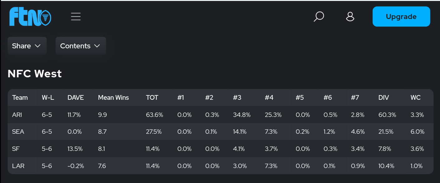 Then in the biggest game of the year we play them in Glendale. If we win we are 8-5 and they are 6-7 so we would have a 3 game lead with the tie breaker with only 4 to go which would essentially lock up the division barring a massive choke job.