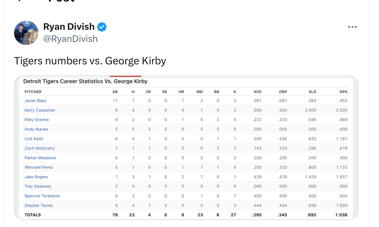 Coeurd’Alene J wrote: ↑Sat Oct 04, 2025 10:57 pmKirby vs Detroit hitters