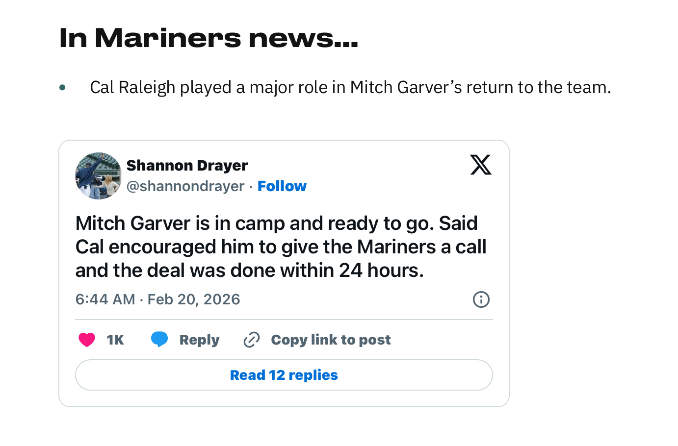 The problem with Garver is he's only better than the other backup catcher. If having Garver means he gets 5-10 more starts than Knizer, I dont think the difference between Garver/Knizer is as large as the difference between Garver and anybody else that will be in the lineup ahead of him.Donn Beach wrote: ↑Thu Feb 19, 2026 4:01 pmGarver would make $2 mil as opposed to Knizer making $1 mil. So we want Knizner on the roster not because he would be the better option but because Wilson would possibly be less inclined to use him. Personally I would prefer the best possible bat. I don't think Wilson will make decisions like that based on how he feels about either garvers or Knizers bat. It's going to be Cals workloadbpj wrote: ↑Thu Feb 19, 2026 2:07 pmI think I would, yes.Donn Beach wrote: ↑Thu Feb 19, 2026 1:10 pm