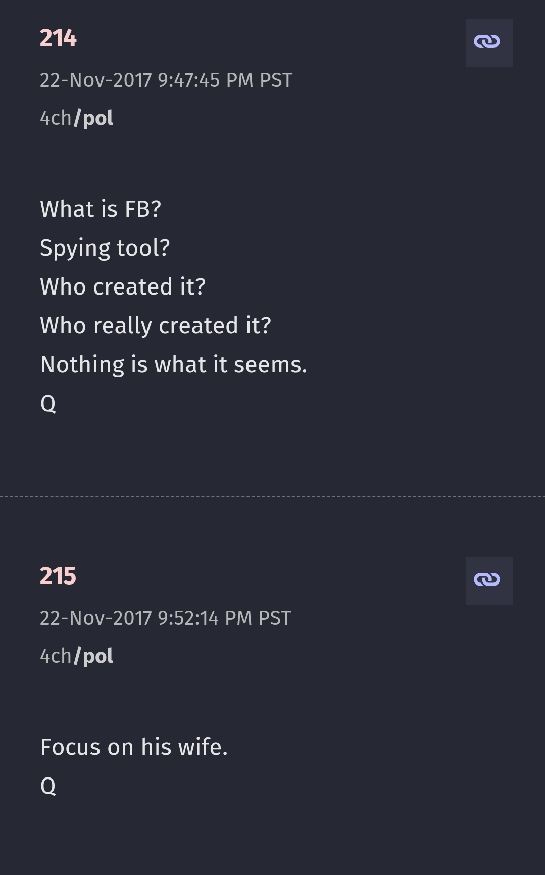 Some posts from 3 years ago talking about Zuckerberg, including his wife who will probably come into play as another Swalwell type spy.