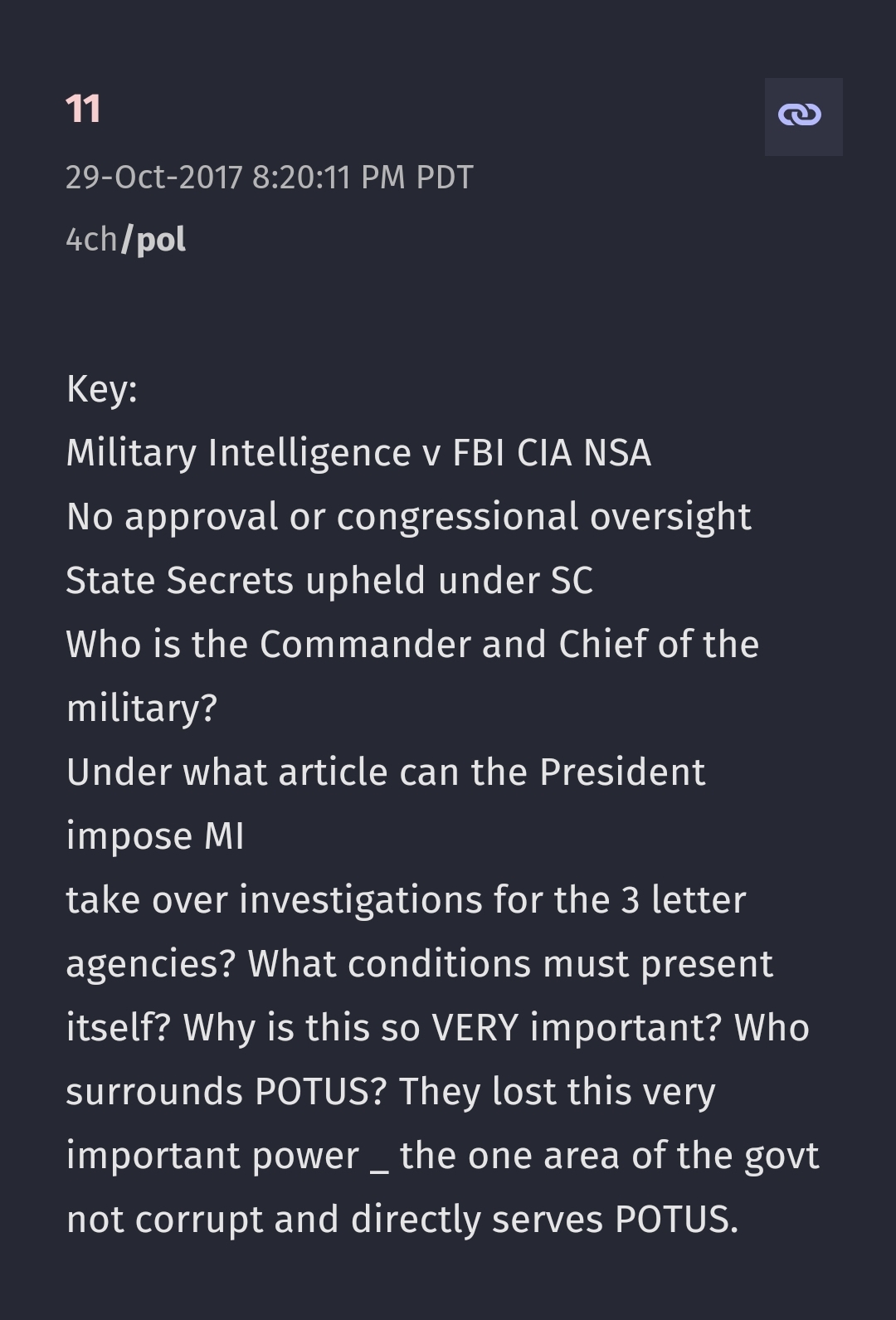 Other posts about how powers will be taken from the CIA and handed over to the NSA which I believe we've started to witness the beginnings of if you've been following the news.