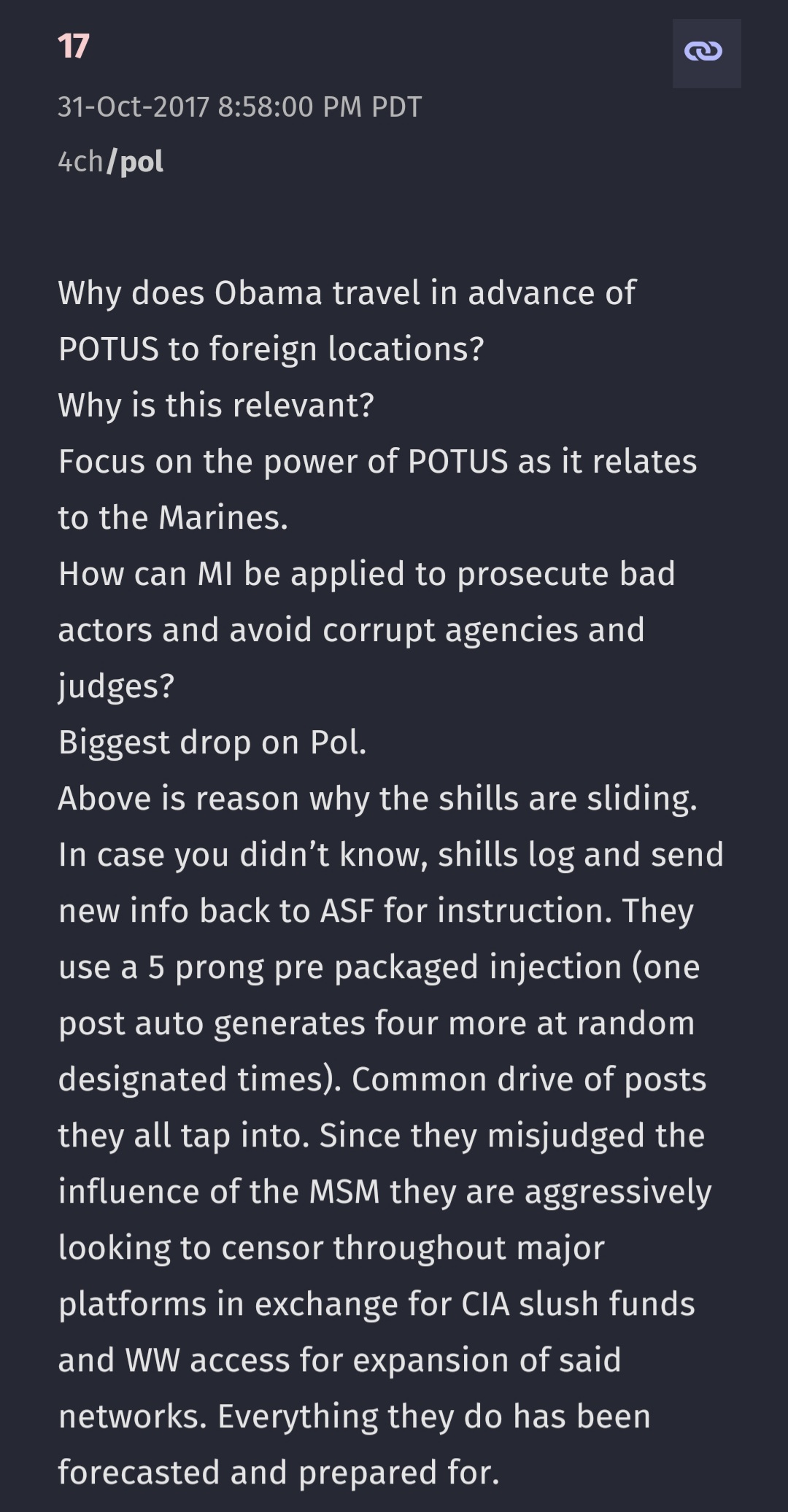Other posts about how powers will be taken from the CIA and handed over to the NSA which I believe we've started to witness the beginnings of if you've been following the news.