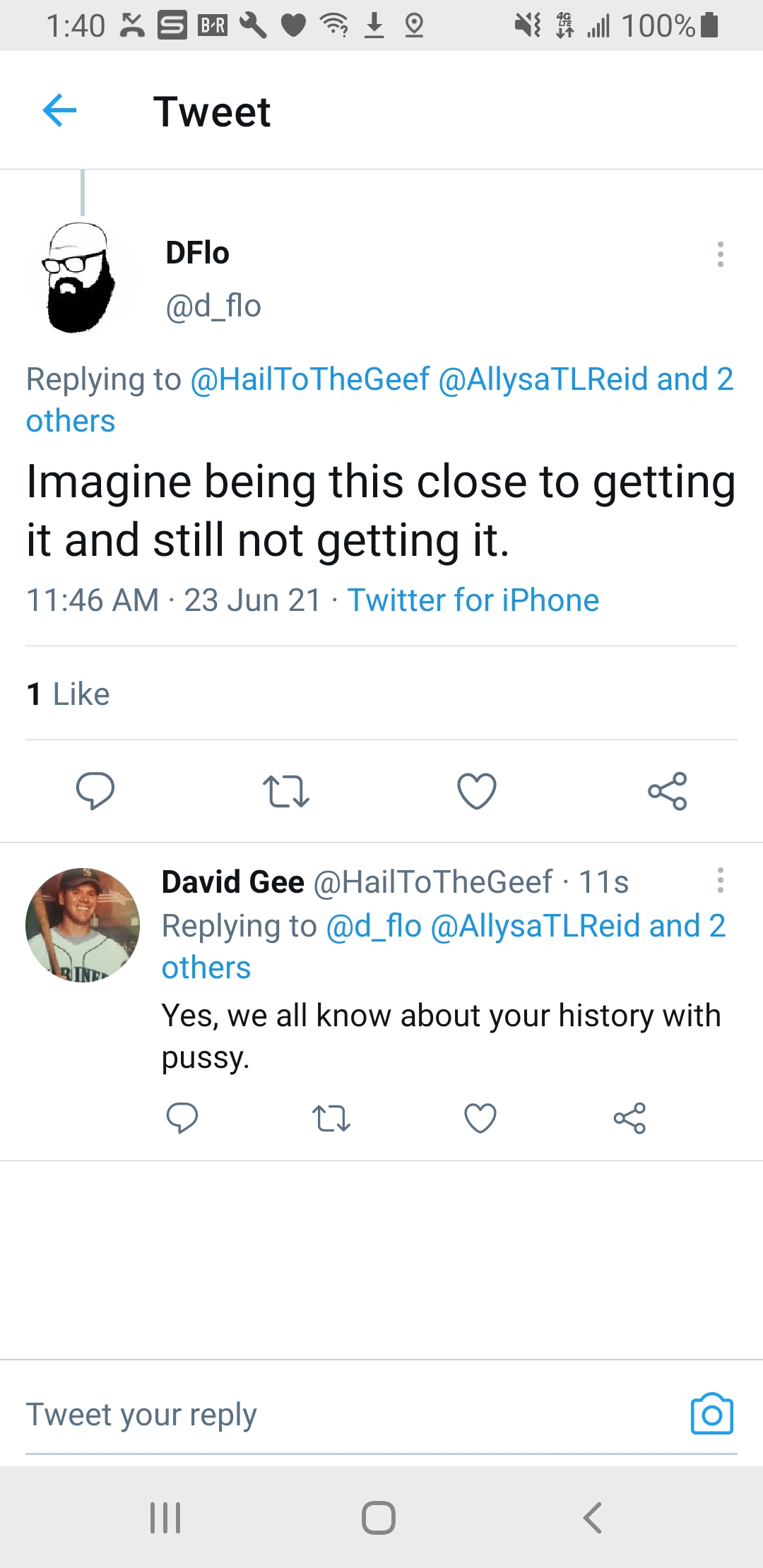 All time best put down I can think of... after writing a thoughtful pussy hurt message in response?