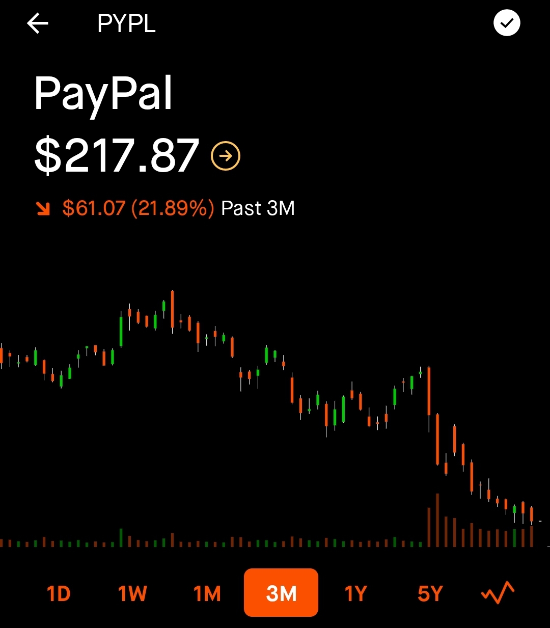 I even underestimated how far PayPal would fall. It's only been 8 months. Everything else is down 30% lately also of course. Except gold. It's up 2%. Since 2012.bpj wrote: ↑Fri Jun 25, 2021 4:42 amOver the past year ebay has been transitioning their sellers from accepting PayPal payments to payments managed by eBay.