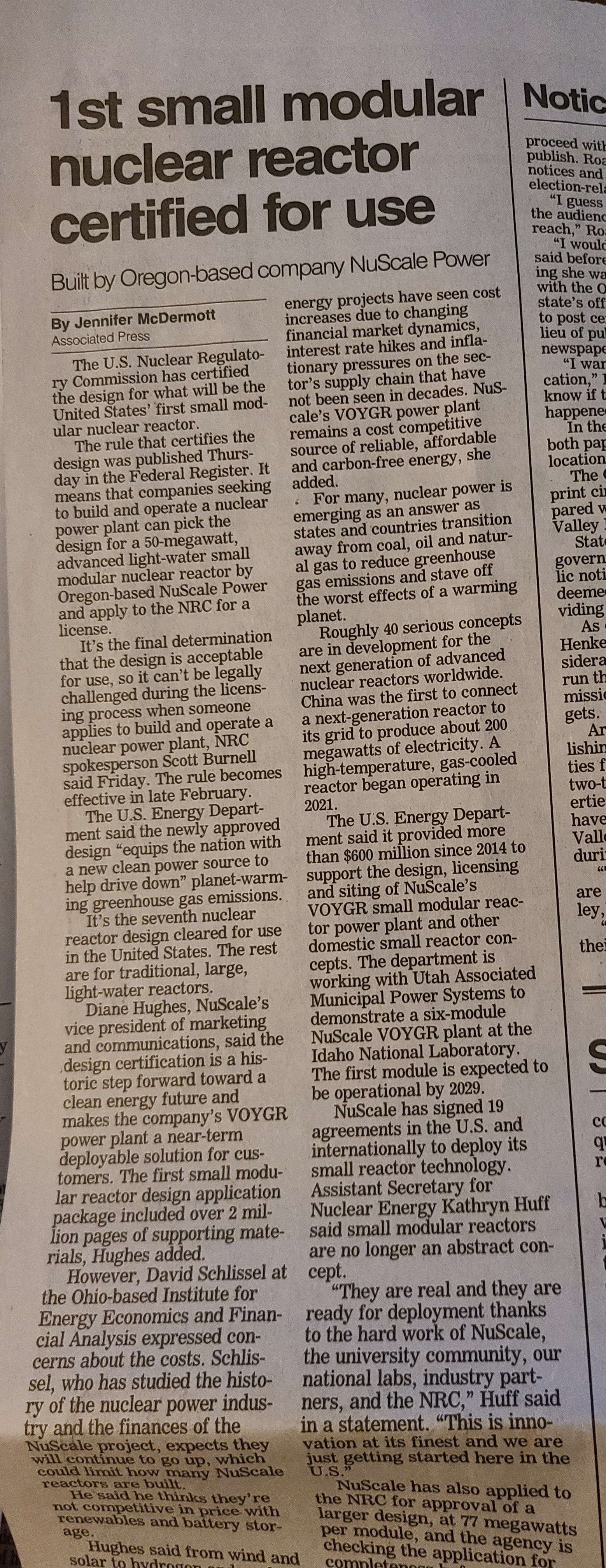 Re: NuScale Power