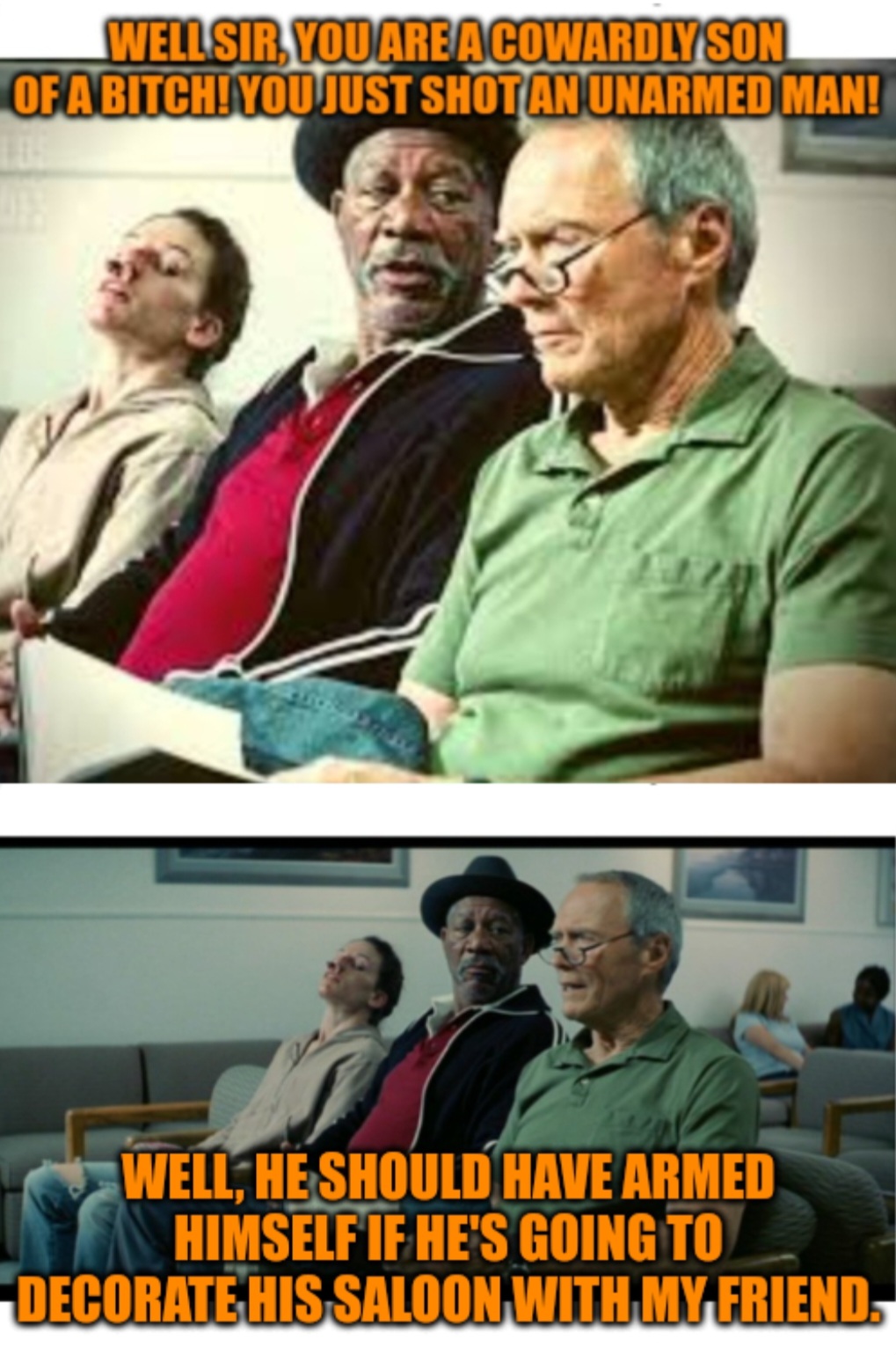 I've recently started making memes, and I think I'll start my page with my series of memes with classic Clint Eastwood movie quotes. Here are the first three: