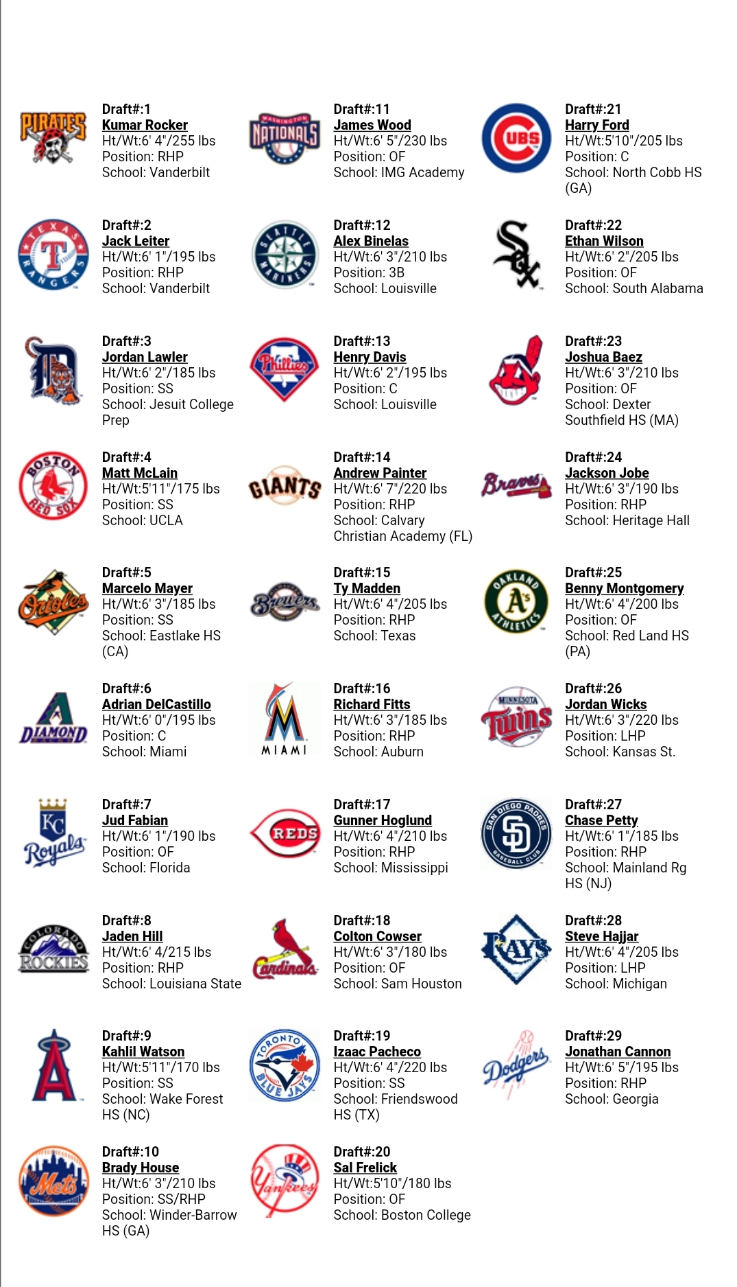 Updated Mock Draft, courtesy of Mymlbdraft: