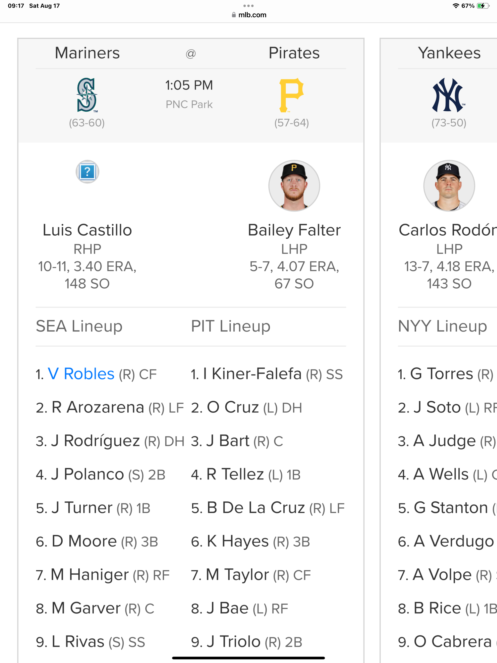 Lineups to follow, just got back from over 2 weeks in Toronto -Ontario on Trent Severn Waterways and haven’t seen much basball and realized I am up,on 3 hrs sleeep