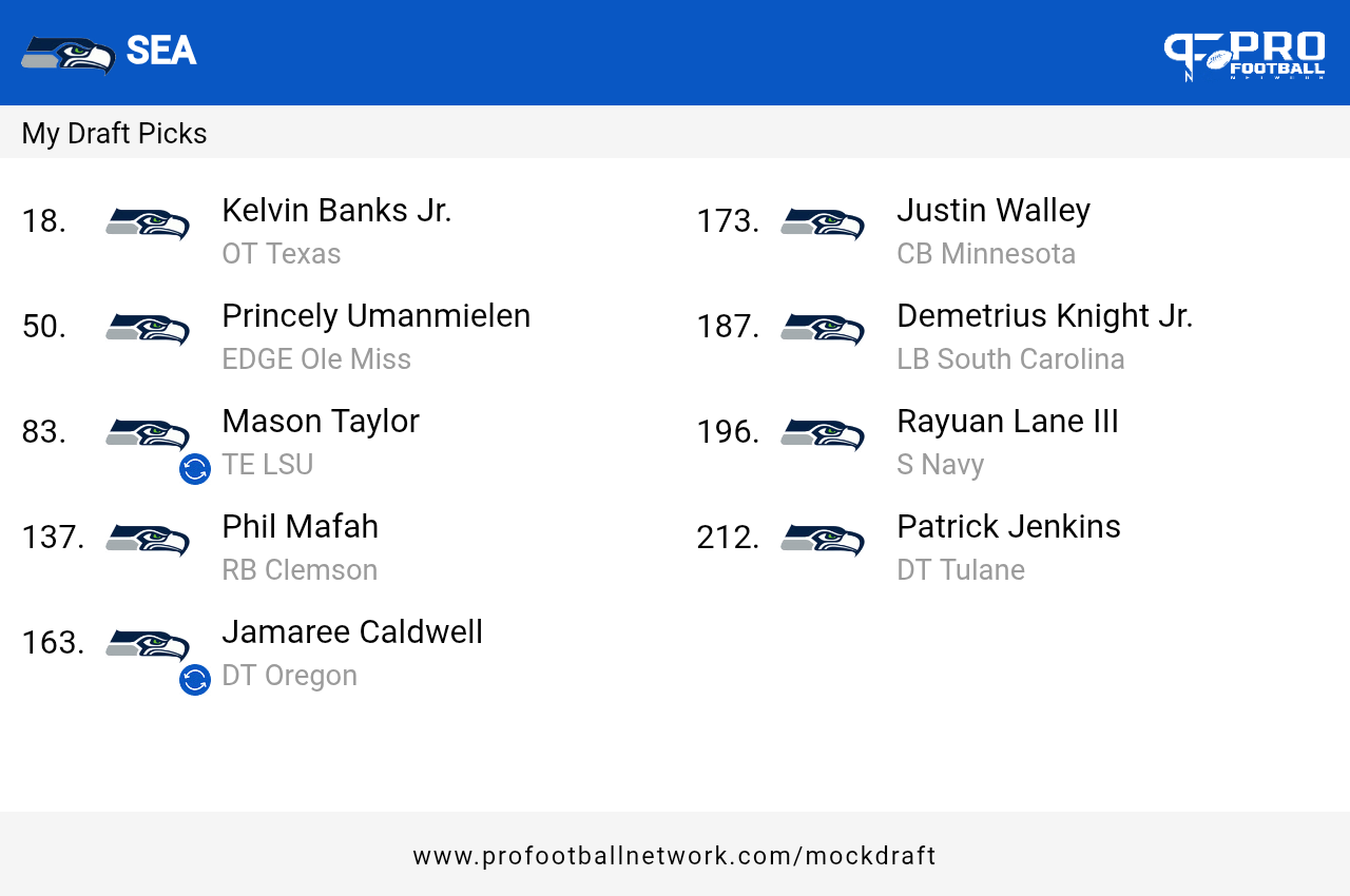 My concern about Milroe is the same as all Ohio State QB's - they are on teams so loaded with talent all they have to do is NOT lose the game. Ohio State QB's are always getting drafted and rarely translate to the NFL game. Yes, I am aware CJ Stroud is playing well - but he is the exception to the rule. That said, it would not eliminate Milroe as a pick - it just dials down expectations. Next Gen QB's all have to be runners as well - it's just where the game is going - but can they actually run a passing offense as well? He could be a fun addition. Seattle HAS to get a QB in this draft - they should be adding to that room every year or looking to improve it.