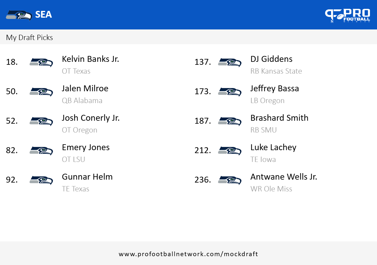 Lots of GMs desperate to trade up in that simulation. I didn't even have to trade any of the Seahawk's 2026 picks away. As a rule, i never do anyway. And i convert any 2026 picks offered by other teams into 2025 picks.