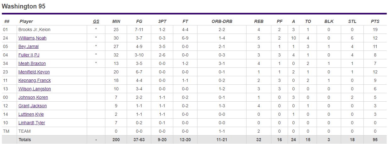 Whenever Alaska made a run in the second half, Brooks answered with a midrange jumper or corner three-pointer to keep Washington comfortably in the lead.