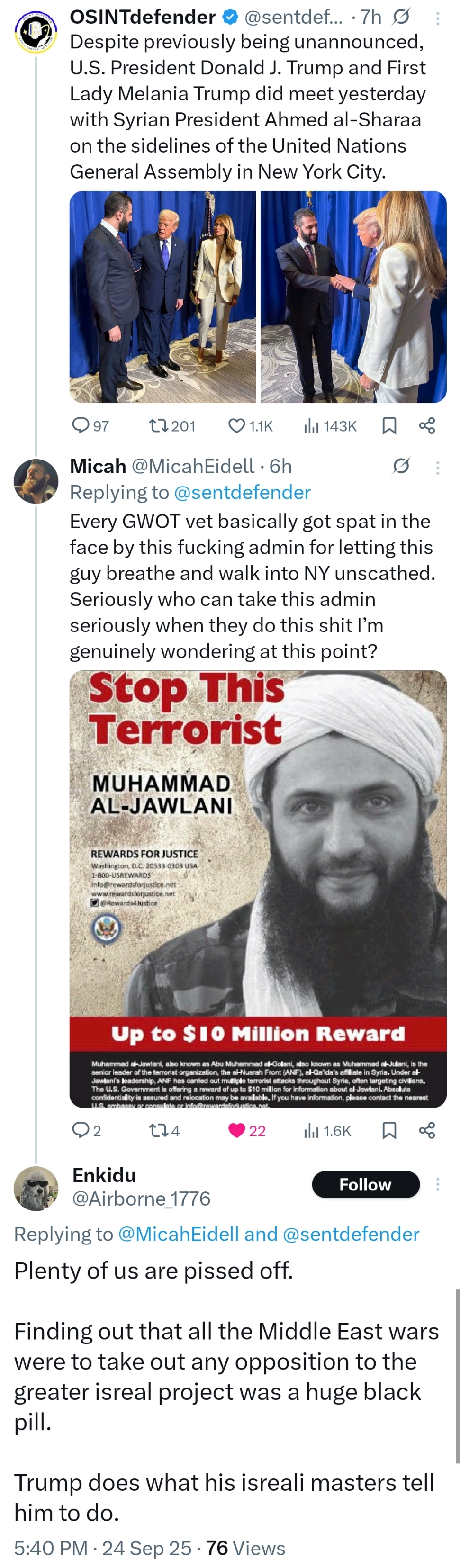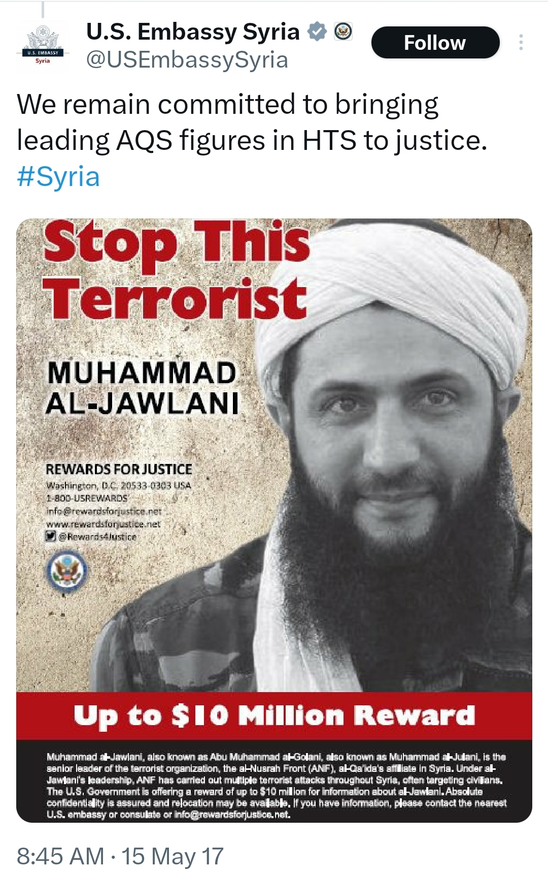 They handed Syria over to a former Al Qaeda/ISIS soldier that they still have a $10M reward listed for.