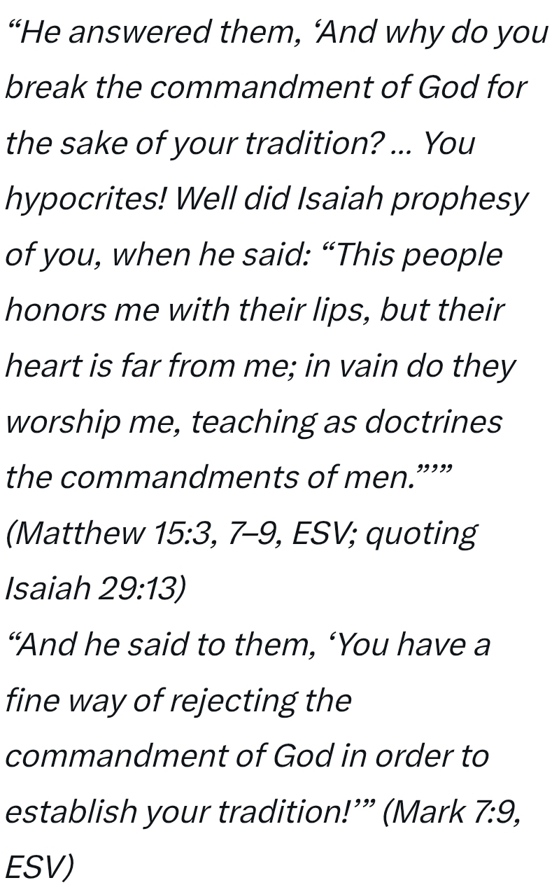 The people Jesus rebuked, the Pharisees, had twisted the law and installed their own human traditions: