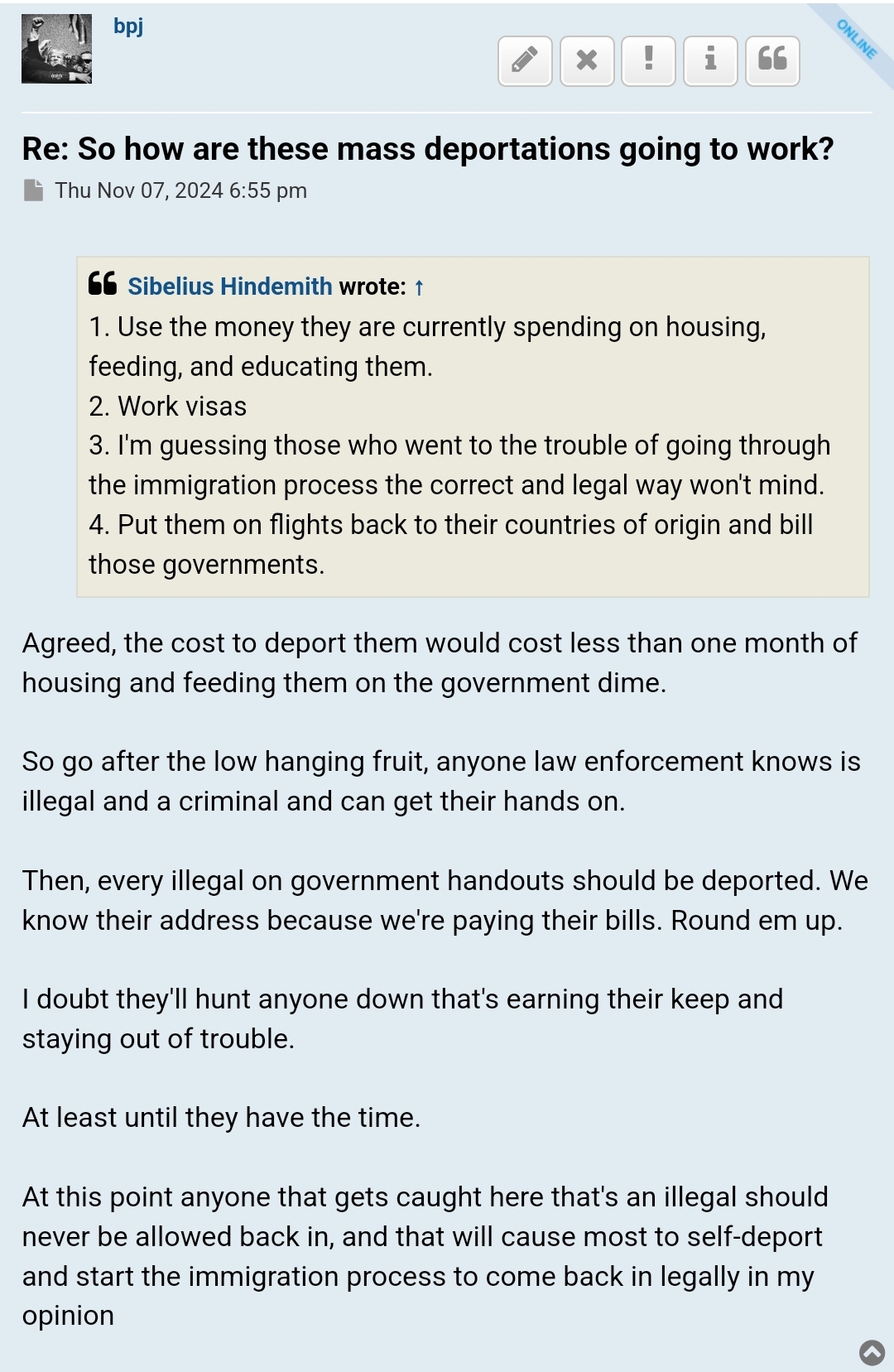 I'm reading about things that sound good to me, like securing the southern border and making it easier for people here illegally to "self deport". But do you have any sense of the "big picture"? With millions of people here illegally, how much of that is being addressed?