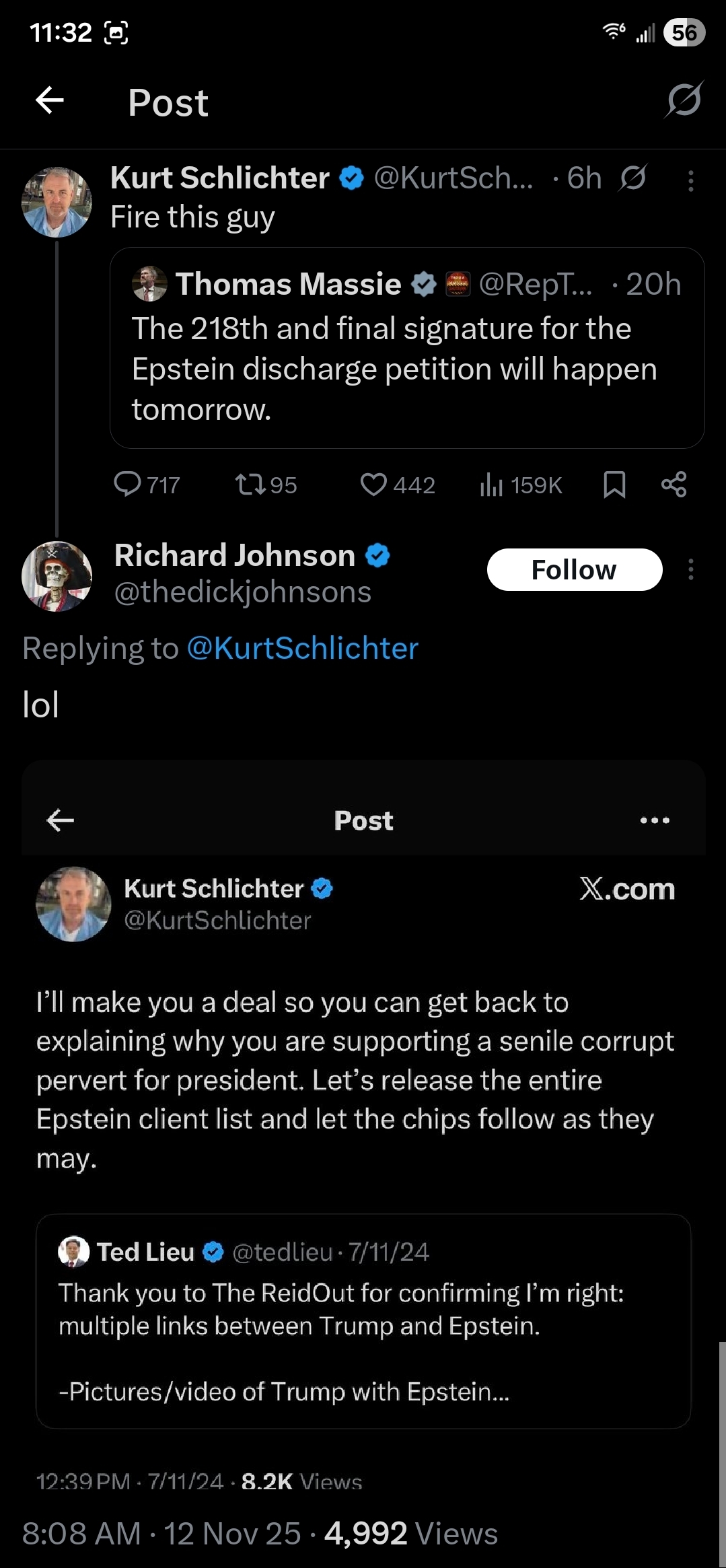 1) He said the Epstein files were a Democrat hoax and anyone that wants them released- he doesnt want their support anymore. Ok then.