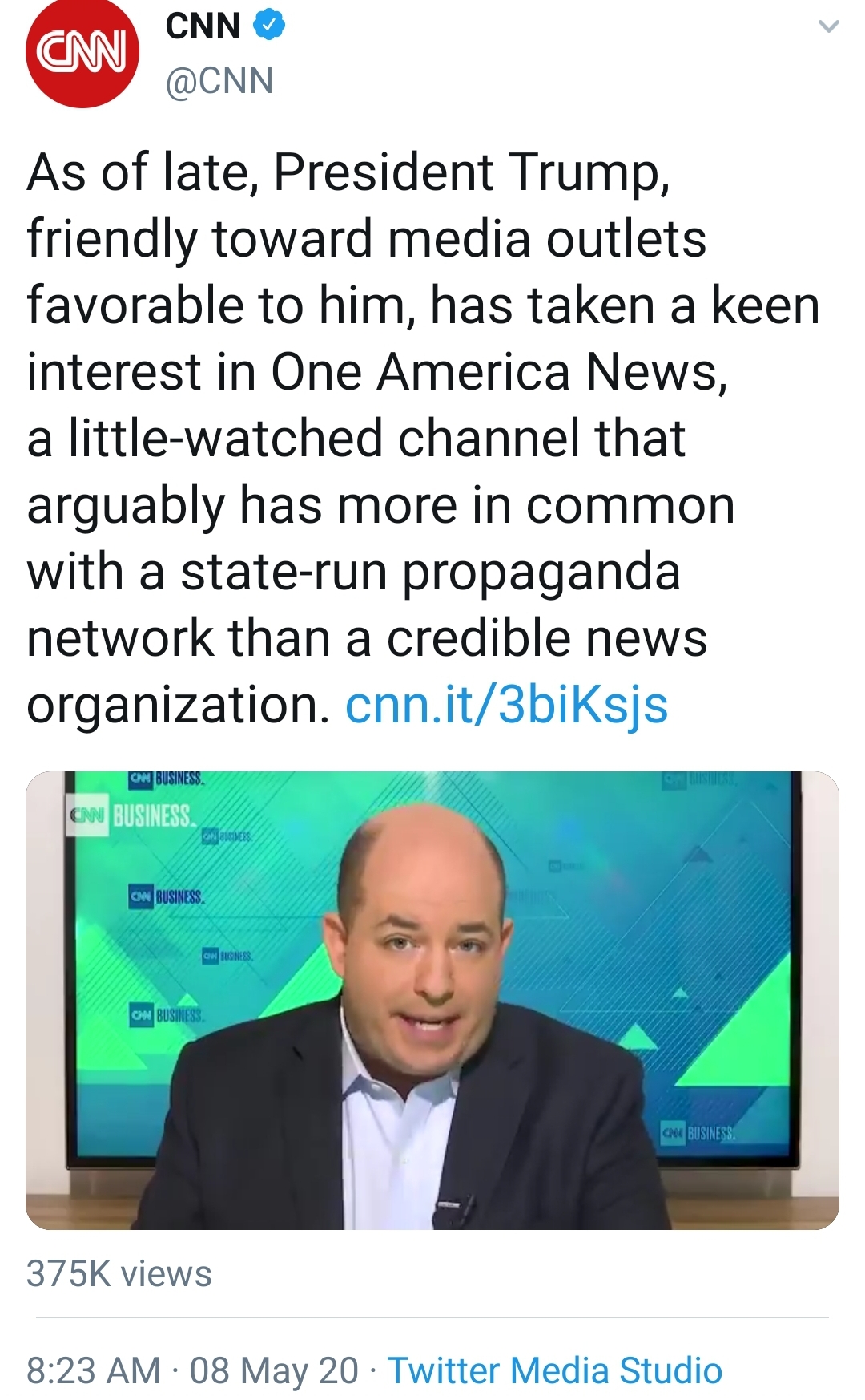 Right on cue, CNN confirms that OANN is not part of their network of control.