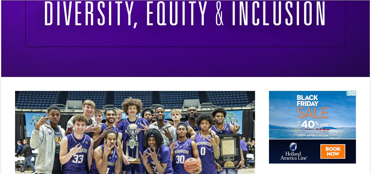 If you go to the Men's basketball section of the Husky athletics website you will see a huge banner that says Diversity, Equity and Inclusion.