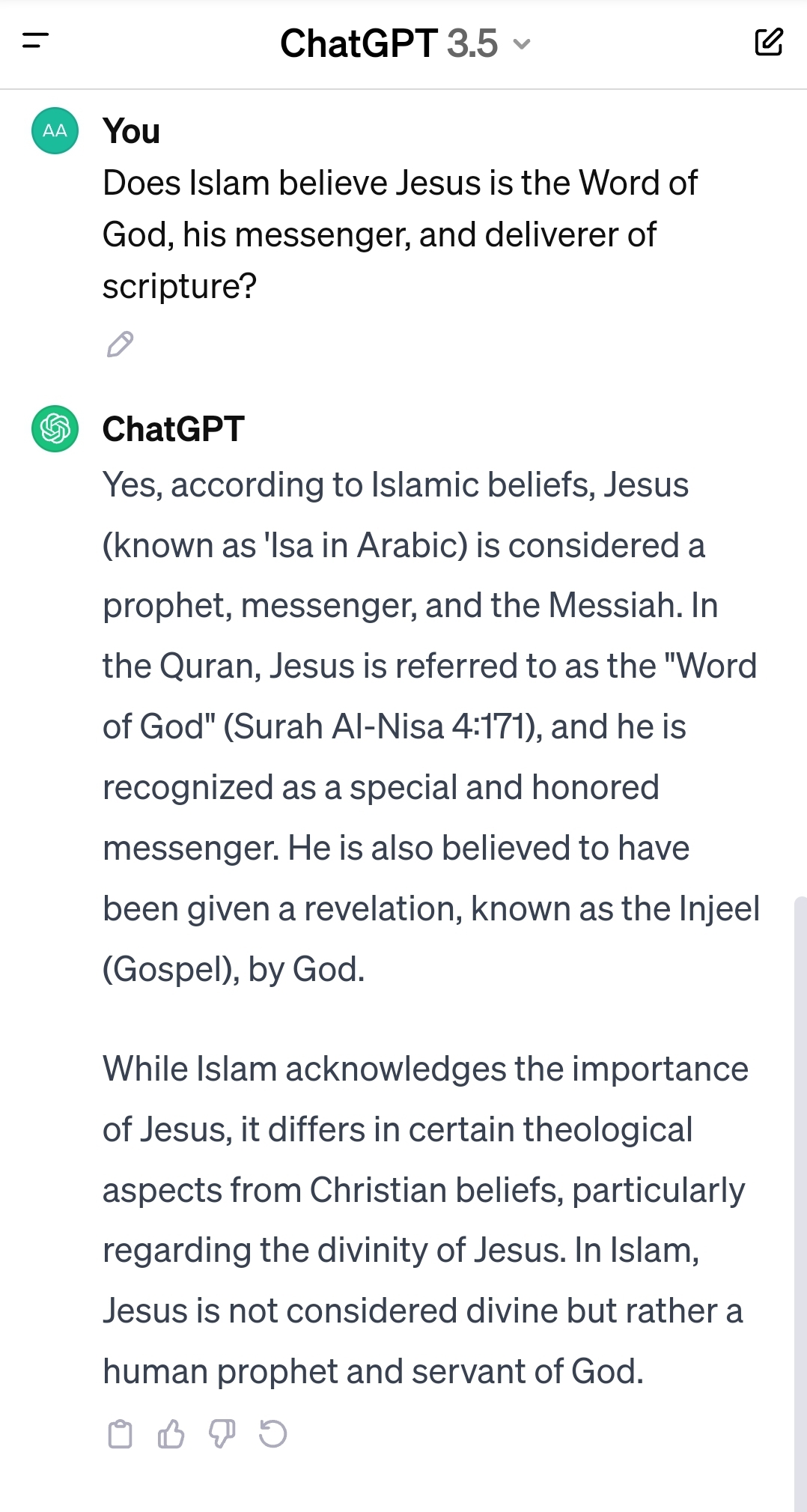 Yes, the "islamic view of Jesus" on the chart does not comport with the theology of Islam.