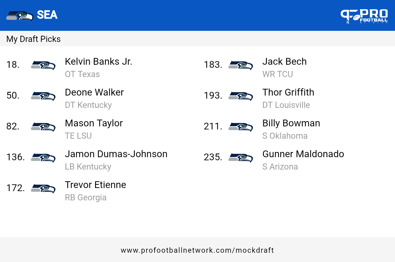 I let the simulator do the entire draft and this is what it came up with for Seattle...