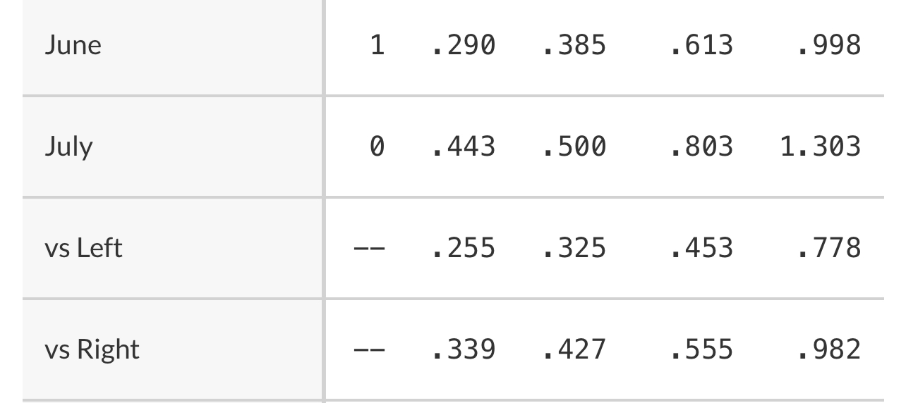 You know the are too monkey brained to bother to look at splits. If he comes up he will replace Solano not Raley.