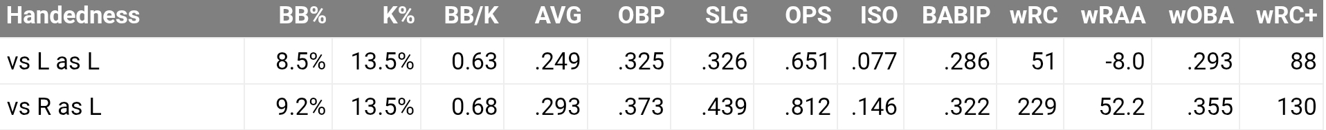 Donovan's career numbers (2025 were even a farther spread):